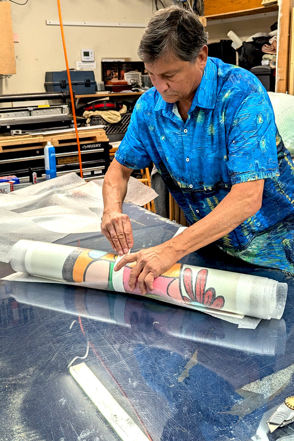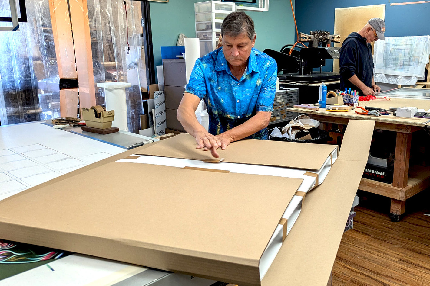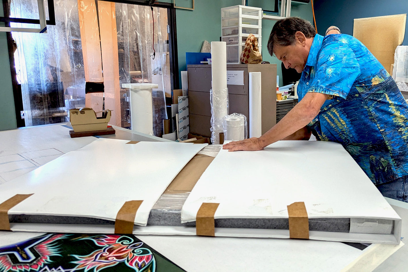 For larger paper prints, we carefully roll the artwork in protective foam wrap and place it in custom-fitted end caps, ensuring a snug and secure fit within the shipping box.